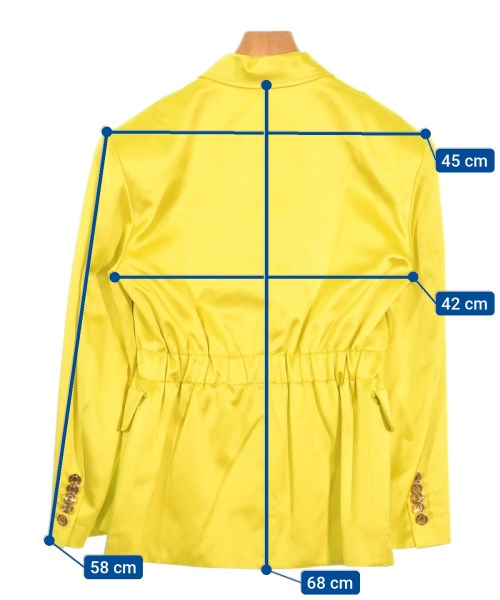 [品牌] GUCCI [性別] 女士 [商品狀態] 等級:B [顏色] 黃色 [尺寸]36(約XS碼) [實際尺寸(公分)] 寬度:42cm 肩寬:45cm 袖長:58cm 長度:68cm [材質](外層和里料)100%真絲, 原產國:義大利 [其他詳情] 季節:春夏 口袋:有外部口袋:4 透明度:無 本體厚度: 正常 襯裡:有 彈性:無 光澤:是 閉合方式:紐扣 圖案:純色 |